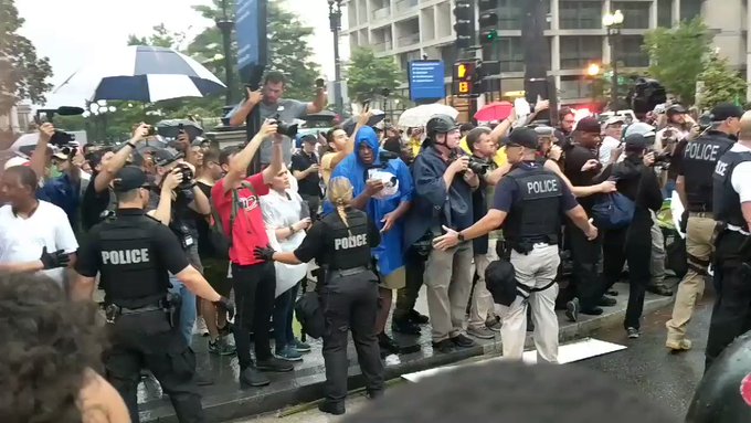 Secret Service trying to remove antifa blockades that was set up to stop #UniteTheRight2 rally goers.